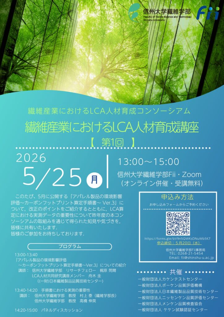 この度、当協会が参画しております「繊維産業におけるLCA人材育成コンソーシアム」にて